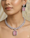 QueenAura™ Premium Silver-Coated CZ Necklace Set for Women | Stainless Steel | Necklace + Earrings | American Diamond Jewelry